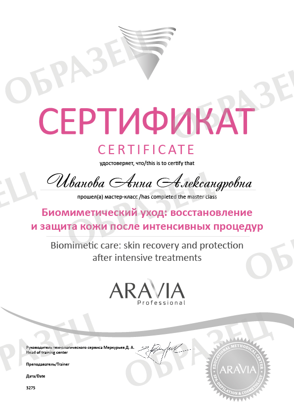 После прохождения мастер-класса участники получат постоянную скидку до 40% на всю продукцию ARAVIA Professional и именной сертификат о прохождении мастер-класса по теме «Биомиметический уход: восстановление и защита кожи».