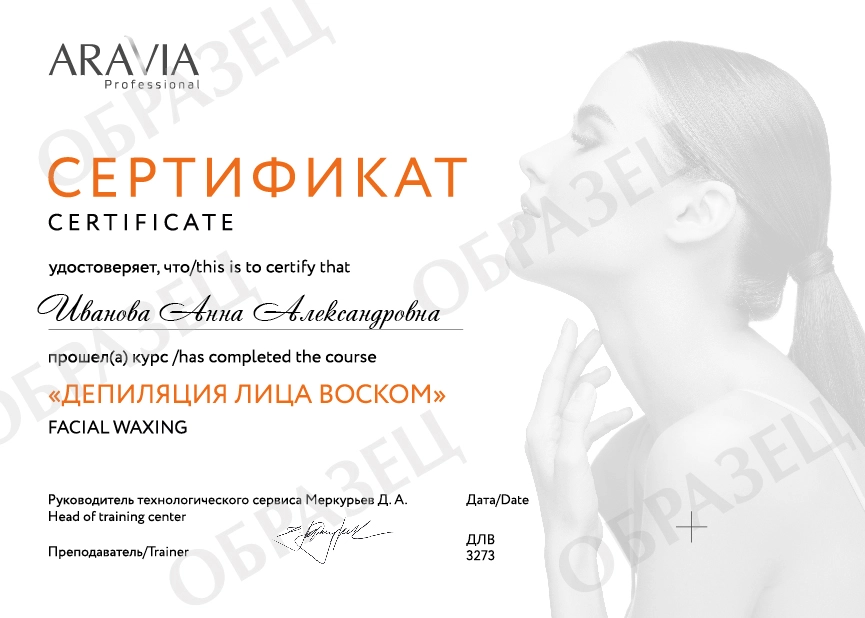 После прохождения курса участники получат именной сертификат о прохождении обучения по направлению «Депиляция лица воском» и постоянную скидку косметолога на продукцию ARAVIA Professional.
