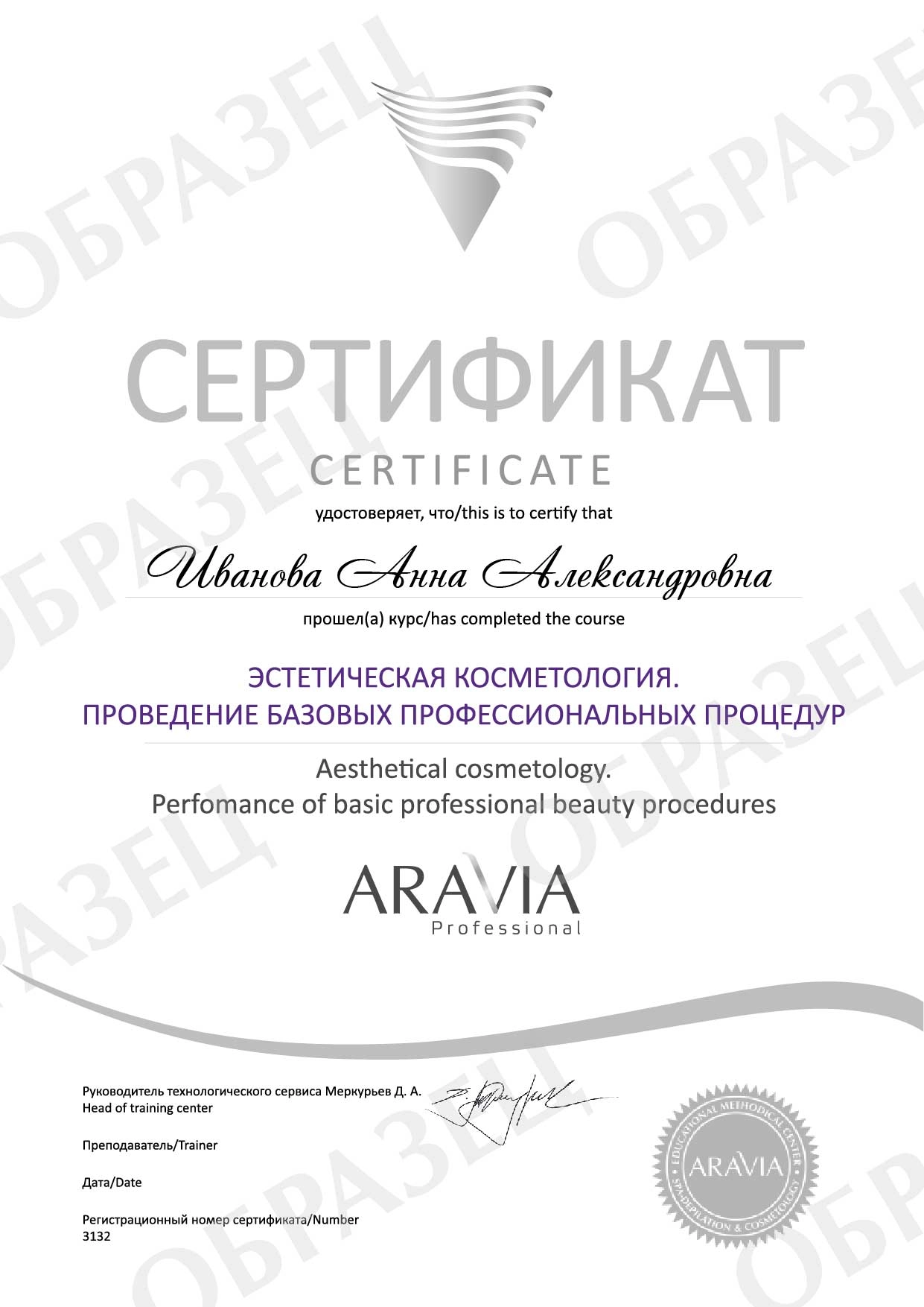 После прохождения курса участники получат методический материал, буклет «Инновационная линия средств для домашнего ухода за лицом», каталог «Профессиональный уход за кожей лица ARAVIA Professional», прайс-листы и именной сертификат о прохождении обучения по направлению «Эстетическая косметология. Проведение базовых профессиональных процедур».