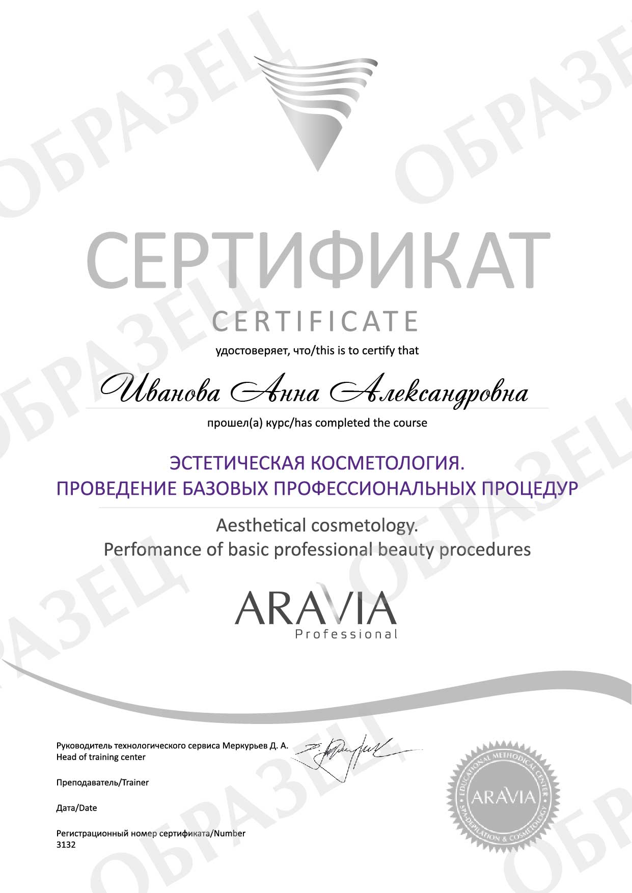 После прохождения курса участники получат методический материал, буклет «Инновационная линия средств для домашнего ухода за лицом», каталог «Профессиональный уход за кожей лица ARAVIA Professional», прайс-листы и именной сертификат о прохождении обучения по направлению «Эстетическая косметология. Проведение базовых профессиональных процедур».