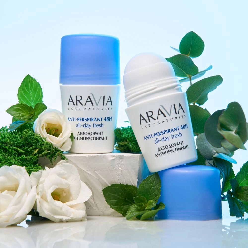 Благодаря ARAVIA вам больше не придется выбирать. Мы создали средство 2в1, которое сочетает в себе свойства как дезодоранта, так и антиперспиранта.