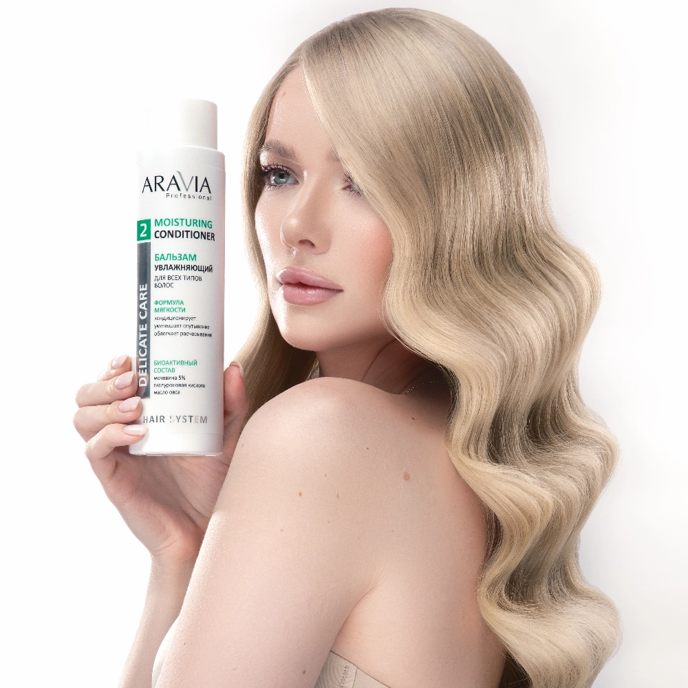 1. Нанесите кондиционер или бальзам, например, Moisturing Conditioner, на длину волос, избегая корней. Его биоактивная формула увлажняет и питает волосы, повышает прочность и эластичность, облегчает расчесывание и придает блеск.
