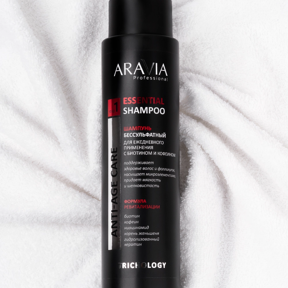 Среди таких продуктов выделяется Essential Shampoo — бессульфатный шампунь для ежедневного использования с биотином и кофеином, сохраняет мягкость и эластичность волос, улучшает питание фолликулов. Ниацинамид и корень женьшеня усиливают микроциркуляцию и стимулируют рост, а гидролизованный кератин защищает структуру волос по всей длине, придавая блеск и упругость.