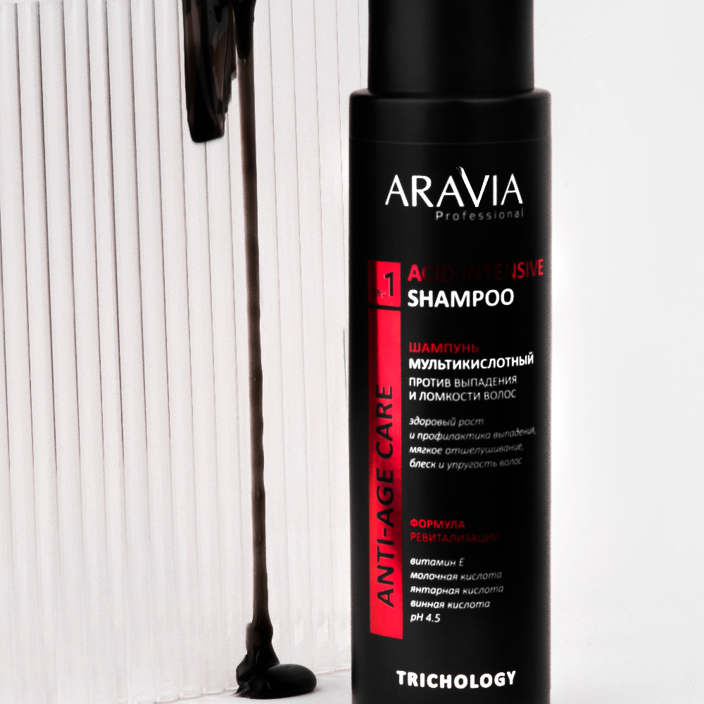 При выпадении и ломкости волос поможет Acid Intensive Shampoo — мультикислотный шампунь с молочной, янтарной и винной кислотами. Комплекс кислот стимулирует микроциркуляцию, улучшает питание фолликулов и предотвращает выпадение волос. Если эффект не наблюдается, рекомендуется консультация трихолога.
