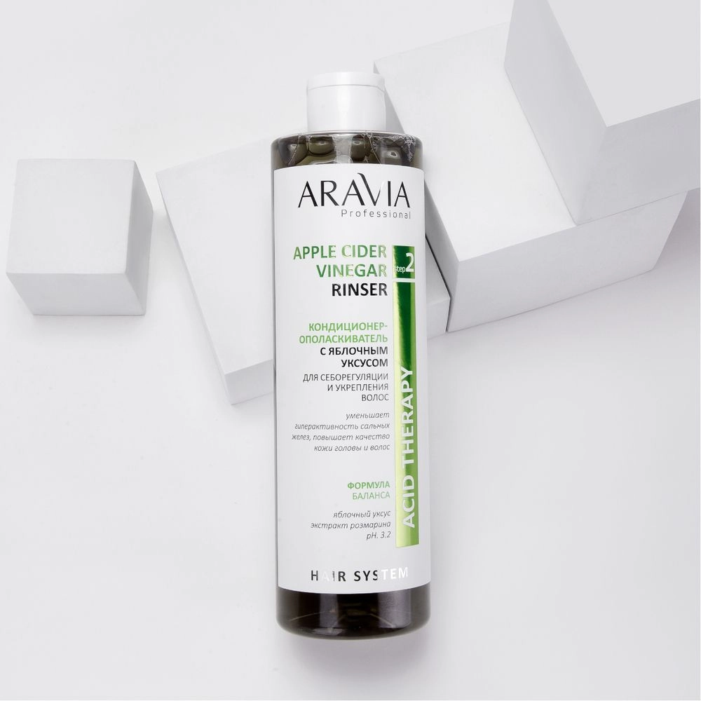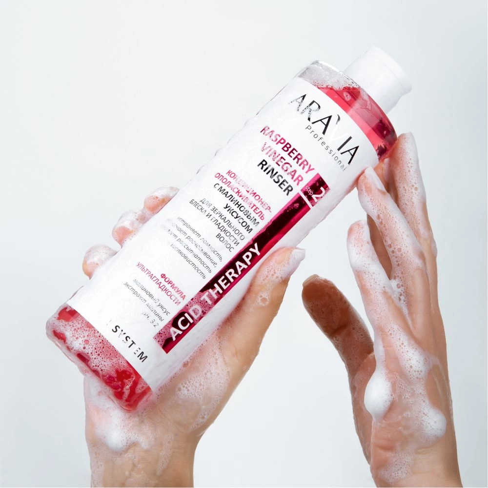 Кондиционер-ополаскиватель работает на завершающем этапе, обеспечивая визуальную гладкость без силиконов. Он нейтрализует жесткость воды при мытье волос, убирает тусклый налет после применения различных косметических продуктов. Небольшое содержание уксуса в составе помогает сглаживать и «закрывать» кератиновые чешуйки волоса, тем самым предупреждая их иссечение и ломкость.