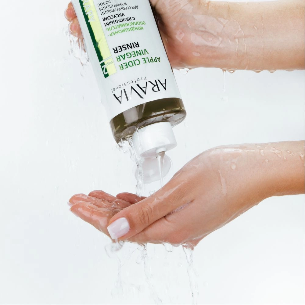 Шампуни часто имеют щелочной pH. Уксус возвращает естественный слабокислый баланс кожи головы и волос (pH 4,5–5,5), что важно для здоровья и защиты от бактерий.