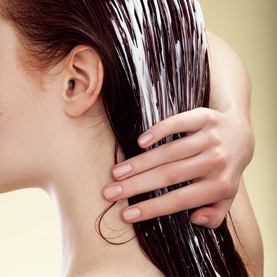 2. Нанесите кондиционер-ополаскиватель на влажные чистые волосы по всей длине, избегая попадания на корни.
