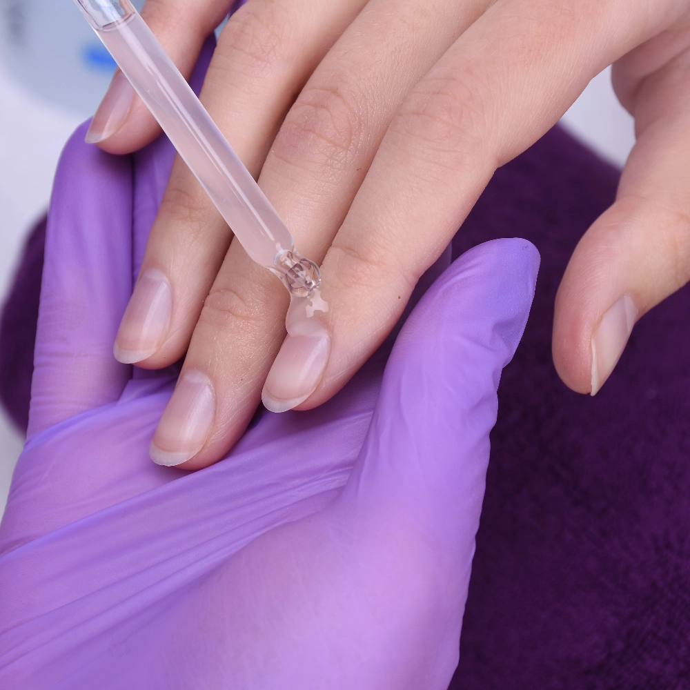 Первая задача — подготовка кожи. Это включает мягкое удаление ороговевших клеток с помощью кератолитиков и размягчение кожи питательными маслами. При плотной кутикуле следует избегать чрезмерного давления инструментов: щадящие движения обеспечивают сохранение целостности эпонихия и снижают риск микротравм.