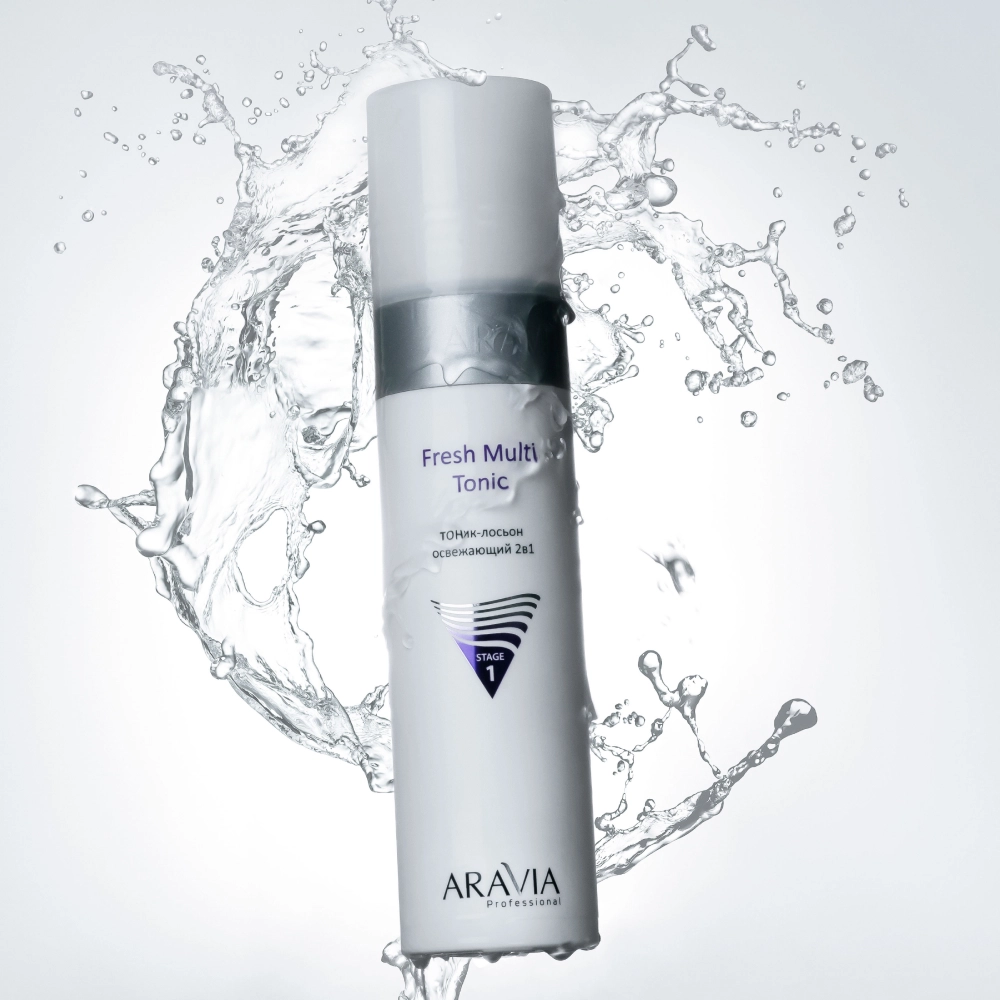 После умывания обязательно нанесите тоник. Он восстанавливает кислотно-щелочной баланс кожи, который нарушается при контакте с водой и очищающими средствами. Нормальный уровень pH помогает предотвратить воспаления. Отличным выбором в этом случае станет тоник-лосьон освежающий 2в1 Fresh Multi Tonic. Аминокислотный комплекс и Д-пантенол интенсивно увлажняют кожу, а ментол дарит приятное ощущение свежести. Тоник также стимулирует микроциркуляцию и лимфоток, укрепляет капилляры, что особенно полезно при склонности к отечности и признаках деформационного старения.