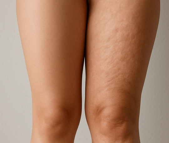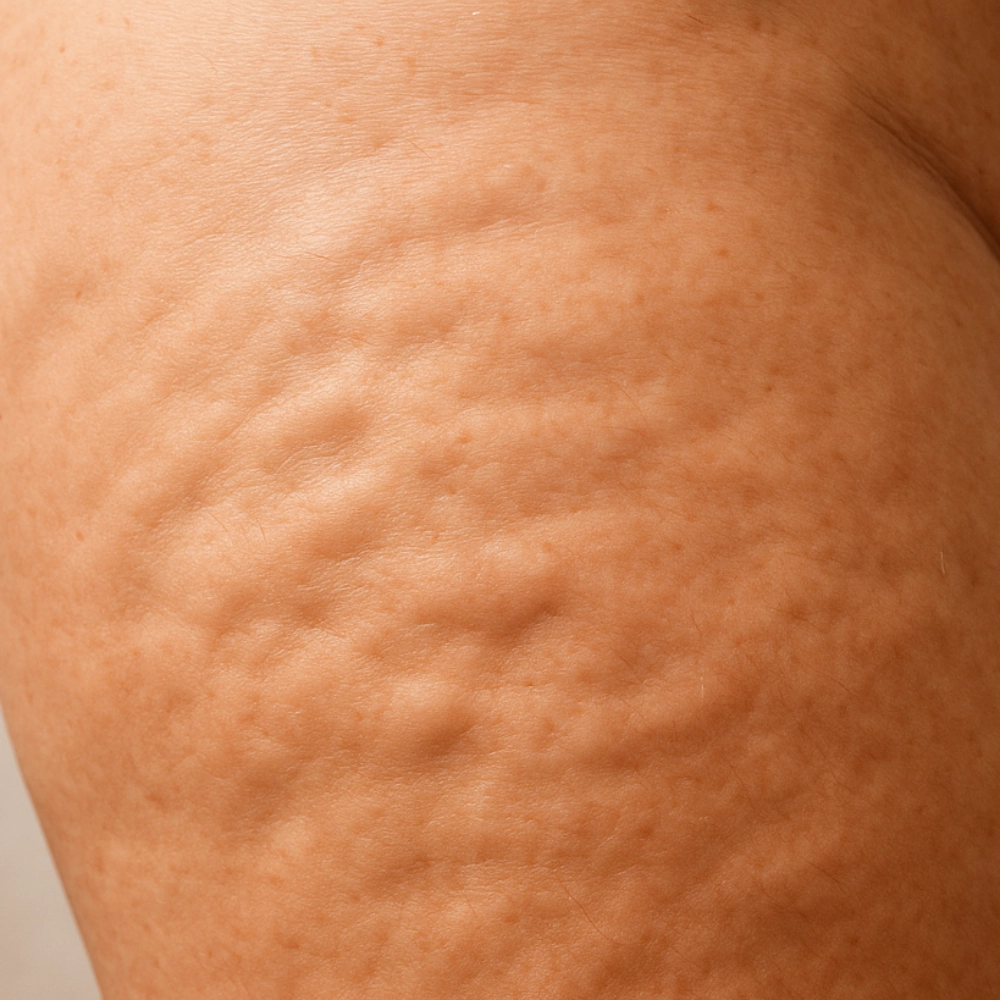 Характерные бугорки и впадины на коже образуют так называемую «апельсиновую корку», или целлюлит, возникающий из-за особенностей строения подкожно-жировой клетчатки и нарушений микроциркуляции крови. Наибольшая предрасположенность к его формированию наблюдается именно у женщин.