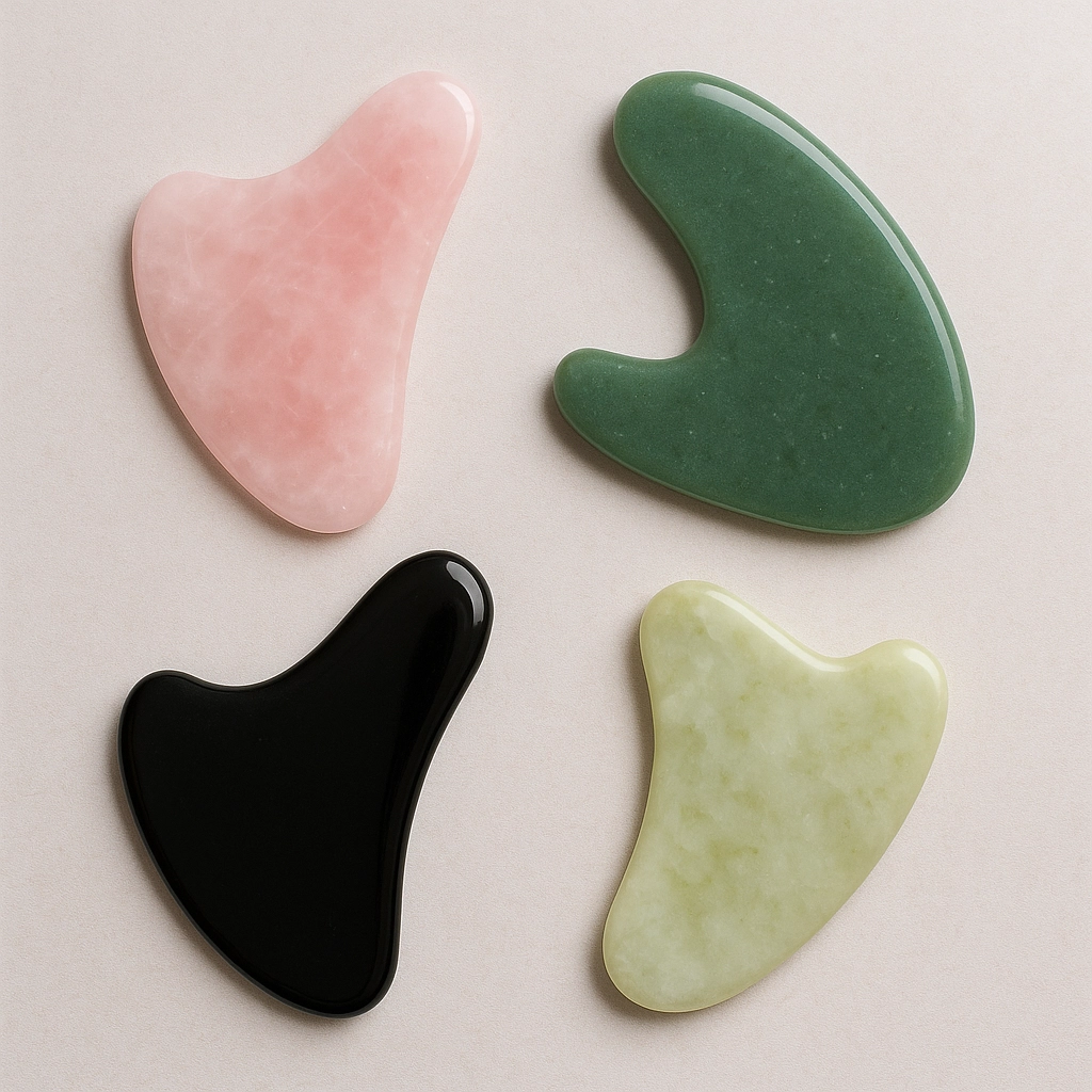 Скребки для гуаша изготавливаются из различных материалов: нефрит, кварц, рог буйвола, металлы или керамика. Каждый камень обладает своей плотностью и скользящими характеристиками, что влияет на комфорт процедуры и интенсивность воздействия. Для лица часто выбирают скребки с гладкими краями и эргономичной формой, которая повторяет контуры лица. Размер и форма скребка определяют область воздействия: узкие скребки удобны для работы вокруг глаз и носа, более широкие применяются на щеках и лбу. При выборе инструмента важно учитывать тип кожи и чувствительность, чтобы избежать раздражения.
