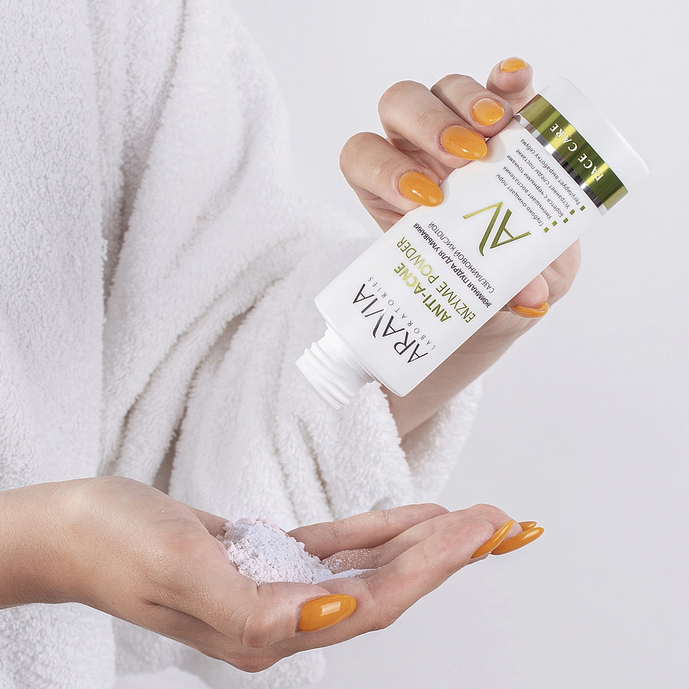 Также для эффективного очищения жирной кожи прекрасно подойдут энзимные пудры, которые при контакте с водой превращаются в мягкую воздушную пену. Такие средства обеспечивают не только глубокое очищение пор, но и легкий пилинг, при этом не пересушивают кожу. Например, энзимная пудра для умывания с азелаиновой кислотой сочетает в себе очищающее, противовоспалительное и себорегулирующее действие. В ее биоактивный состав входят: