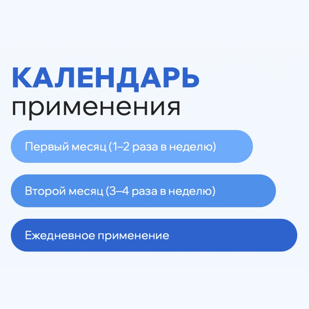 • 2-й месяц — 3-4 раза в неделю. Если кожа отвечает спокойно, частоту применения можно увеличивать;