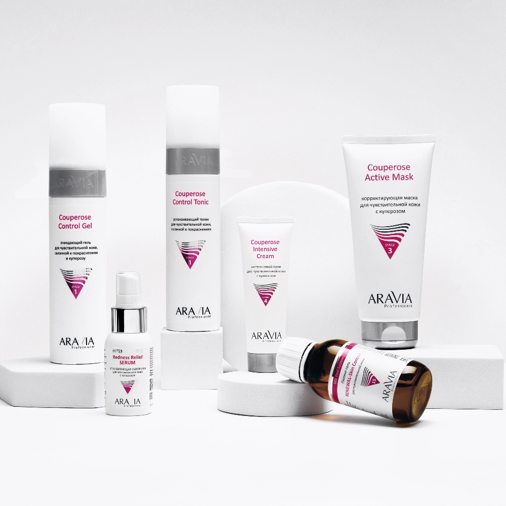 На ранних стадиях купероза отмечается кратковременная гиперемия, затем формируются стойкие участки покраснения и видимая сетка. На более позднем этапе сосудистые изменения становятся плотными и устойчивыми. Поэтому маскировка включает мягкое очищение, укрепление капилляров, восстановление барьера и корректирующие средства, которые визуально убирают красноту. Для ежедневной поддержки кожи используются средства с пометкой «антикупероз», направленные на укрепление сосудистой стенки и борьбу с покраснениями.