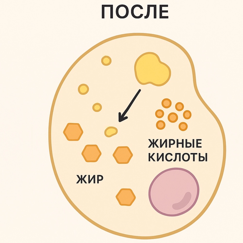 Главное отличие липолитиков от обычных методов снижения веса в том, что они работают локально. Препарат запускает процесс распада жировых клеток (адипоцитов), после чего продукты распада выводятся естественным образом через лимфатическую и кровеносную системы.