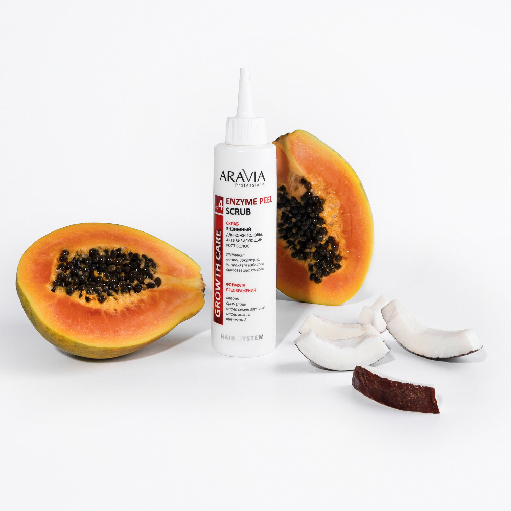 Для сухой, чувствительной или раздраженной кожи подойдет Enzyme Peel Scrub — энзимный скраб с мягкой кремовой текстурой. Он не содержит абразивных частиц и действует за счет растительных ферментов — папаина и бромелайна, которые деликатно растворяют ороговевшие клетки и глубоко очищают поры, не повреждая кожу. Компоненты дополнены маслом семян горчицы, маслом кокоса и витамином Е: они питают и смягчают кожу, поддерживают ее барьер, регулируют уровень увлажненности и укрепляют волосяные луковицы. Такое сочетание обеспечивает ферментативную эксфолиацию, активизирует рост волос и при регулярном применении помогает поддерживать баланс микробиома кожи головы.