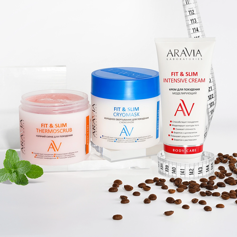 После проведения обертывания важно нанести моделирующий крем для похудения Fit & Slim Intensive Cream. Он поможет быстрее справиться с жировыми отложениями в проблемных зонах. Крем снимает отечность, тонизирует, питает и увлажняет кожу, повышает ее упругость и эластичность. Кофеин в составе обладает мощными антицеллюлитными, тонизирующими и лимфодренажными свойствами. Витамин Е запускает процесс обновления клеток, насыщает кожу кислородом и способствует повышению упругости.