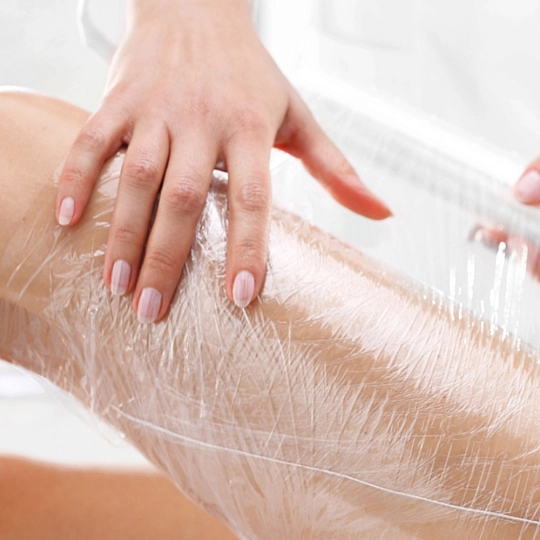 Суть процедуры проста – на проблемную зону наносят специальное средство с активными компонентами, затем зону оборачивают пленкой, которая создает парниковый эффект.