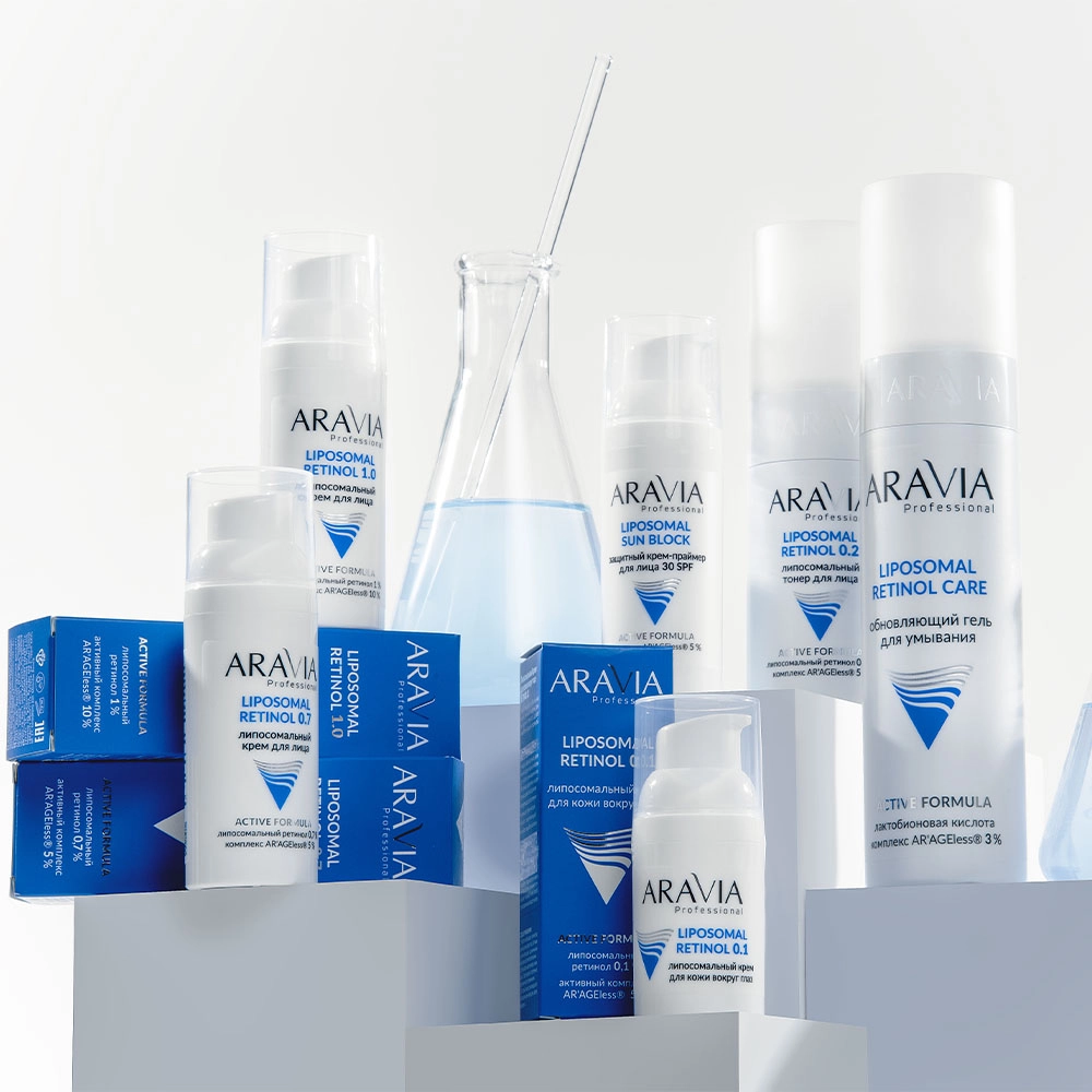 Эксперты ARAVIA Professional поставили перед собой задачу — сделать продукт, который даст видимый результат без побочных эффектов, подходящий для круглогодичного использования. В итоге остановились на липосомальной форме компонента. Так появился всесезонный комплекс — LIPOSOMAL RETINOL CARE, в основе которого лежит актив AC RETINOL LIPOSOME OS — система с 10% ретинола, заключенного в фосфолипидные сферы, которые защищают его от разрушения и обеспечивают глубокую доставку активных компонентов через несколько слоев эпидермиса, минимизируя риск раздражений и ретинизации.