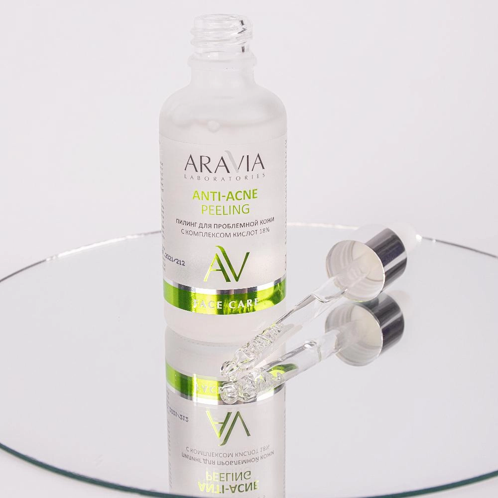 Также для эффективной эксфолиации и очищения пор хорошо подходит пилинг для проблемной кожи с комплексом кислот 18% Anti-Acne Peeling. Комплекс кислот (азелаиновая, салициловая, миндальная, глюконовая) глубоко очищает поры, рассасывает комедоны, нормализует себум, выравнивает тон и микрорельеф, повышает барьерные функции кожи.