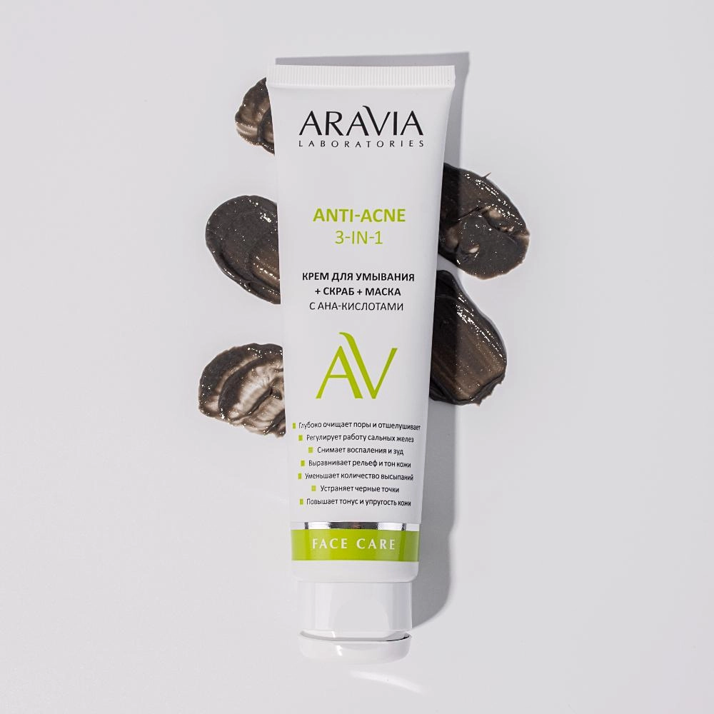 Грубые скрабы с жесткими абразивами использовать нельзя, чтобы не травмировать кожу. Альтернативой служит крем-скраб Anti-Acne 3-в-1, сочетающий в себе функции умывания, скраба и маски. В числе компонентов — черная глина, глюконовая и гликолевая кислоты, бисаболол, витамин Е, масло ши, аллантоин и пантенол. Состав рассасывает комедоны, нормализует работу сальных желез, выравнивает тон и микрорельеф, увлажняет и повышает упругость кожи.