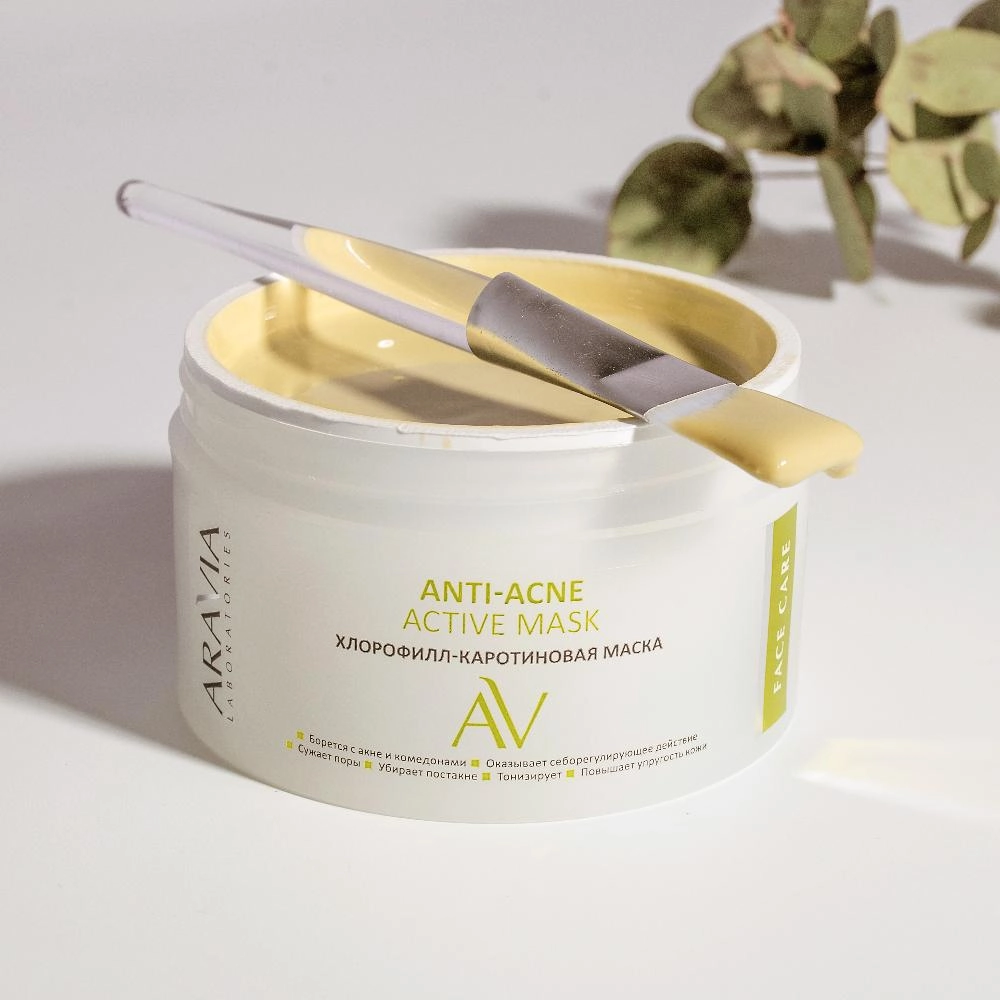 Выраженными поросуживающими, матирующими и очищающими свойствами отличается хлорофилл-каротиновая маска Anti-Acne Active Mask. Она была разработана специально для ухода за жирной и проблемной кожей лица. Маска подавляет активность воспалений, сокращает количество акне и комедонов, очищает и сужает поры. Хлорофилл-каротиновая паста уничтожает патогенные микроорганизмы, мягко отшелушивает эпидермис, ускоряет процессы обновления и освежает кожу. Каолин вытягивает из пор загрязнения, подсушивает прыщики, контролирует работу сальных желез и ускоряет процессы регенерации. Комплекс витаминов А, Е и F улучшает общий вид и состояние кожи, повышает синтез коллагена, эластина и гиалуроновой кислоты, отвечающих за молодость. Маска также сокращает видимые признаки старения, поэтому подойдет для сужения пор после 40 лет.