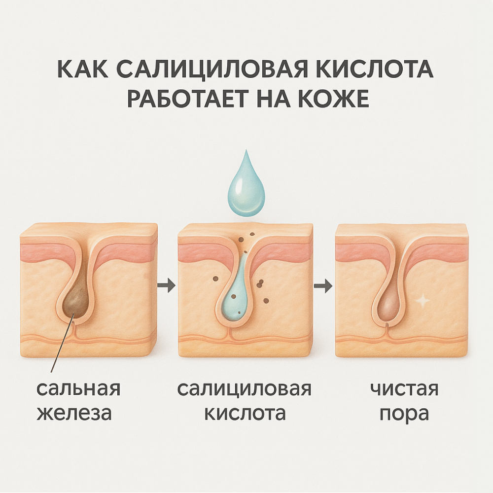 Качественное очищение кожи с помощью салициловой кислоты помогает запустить процессы регенерации кожи, способствует разглаживанию морщин и уменьшению проявления пигментных пятен.