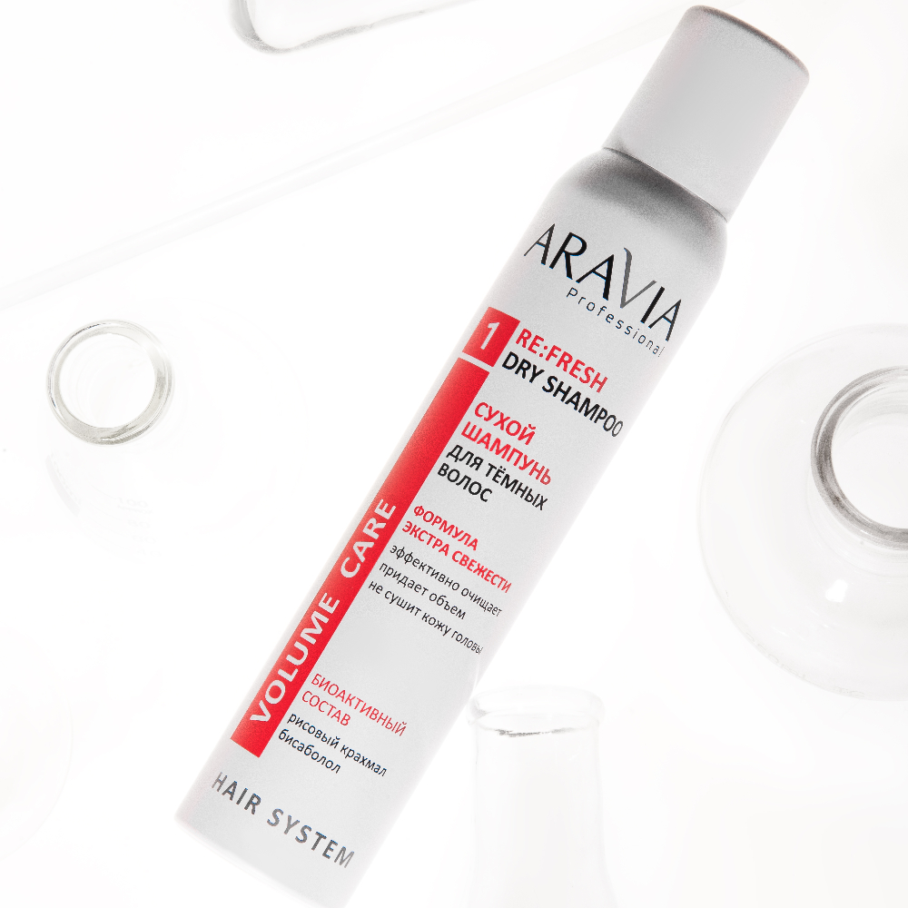Специально для оттенков потемнее ARAVIA Professional предлагает вариант с аналогичным действием — сухой шампунь для темных волос Re:Fresh Dry Shampoo. Его компоненты тоже включают рисовый крахмал для эффективного очищения корней, в свою очередь бисаболол успокаивает кожу, снимает раздражение и способствует удержанию влаги, предотвращая сухость и шелушение. Продукт сохраняет цвет и естественный блеск волос, одновременно придавая им свежесть и объем.