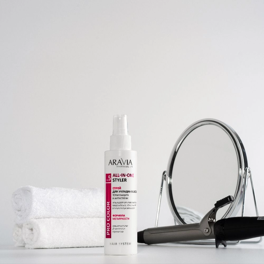 Если цель — создание укладки с подвижной фиксацией, контролем пушистости и защитой от перегрева, оптимальным решением будет спрей для укладки волос термозащита и антистатик All-In-One Styler. Его состав на основе растительных протеинов, провитамина B5 и трегалозы формирует невесомый защитный слой, который распределяет тепло от стайлинговых приборов и снижает риск повреждения кутикулы. Спрей помогает сохранить естественную подвижность волос, повышает эластичность и обеспечивает антистатический эффект, что особенно важно при работе с влажностью воздуха и при сложных укладках.