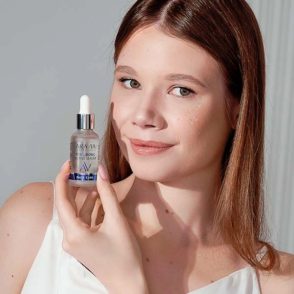 Молекулы гиалуроновой кислоты способны притягивать и удерживать объем воды, в 1000 раз превышающий их собственный вес. Клетки, «напитанные» влагой, делают кожу визуально более плотной, а ее поверхность ровной и гладкой.