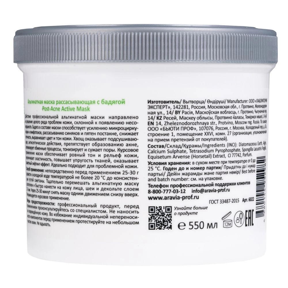 Альгинатная маска рассасывающая с бадягой Post-Acne Active Mask, 550 мл