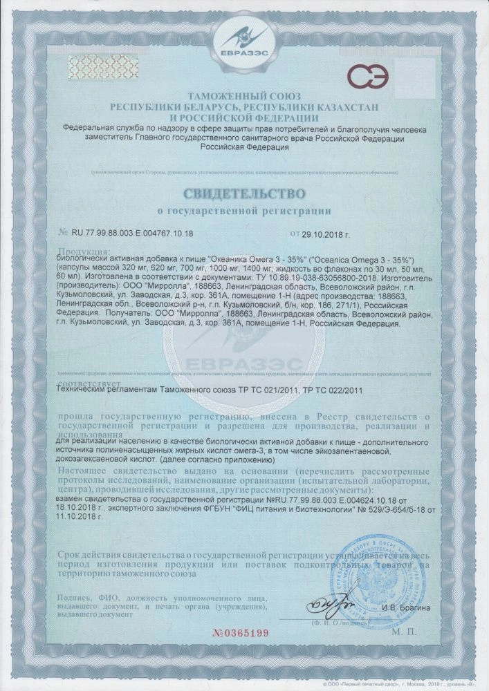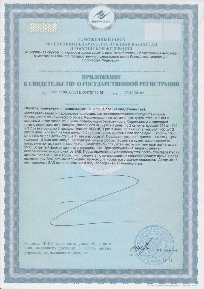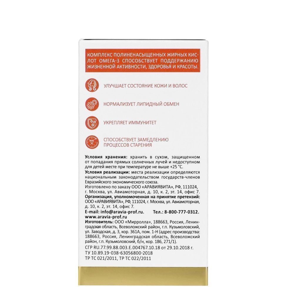 Рекомендации для использования: в качестве биологически активной добавки к пище — дополнительного источника полиненасыщенных жирных кислот омега-3, в том числе эйкозапентаеновой, докозагексаеновой кислот.