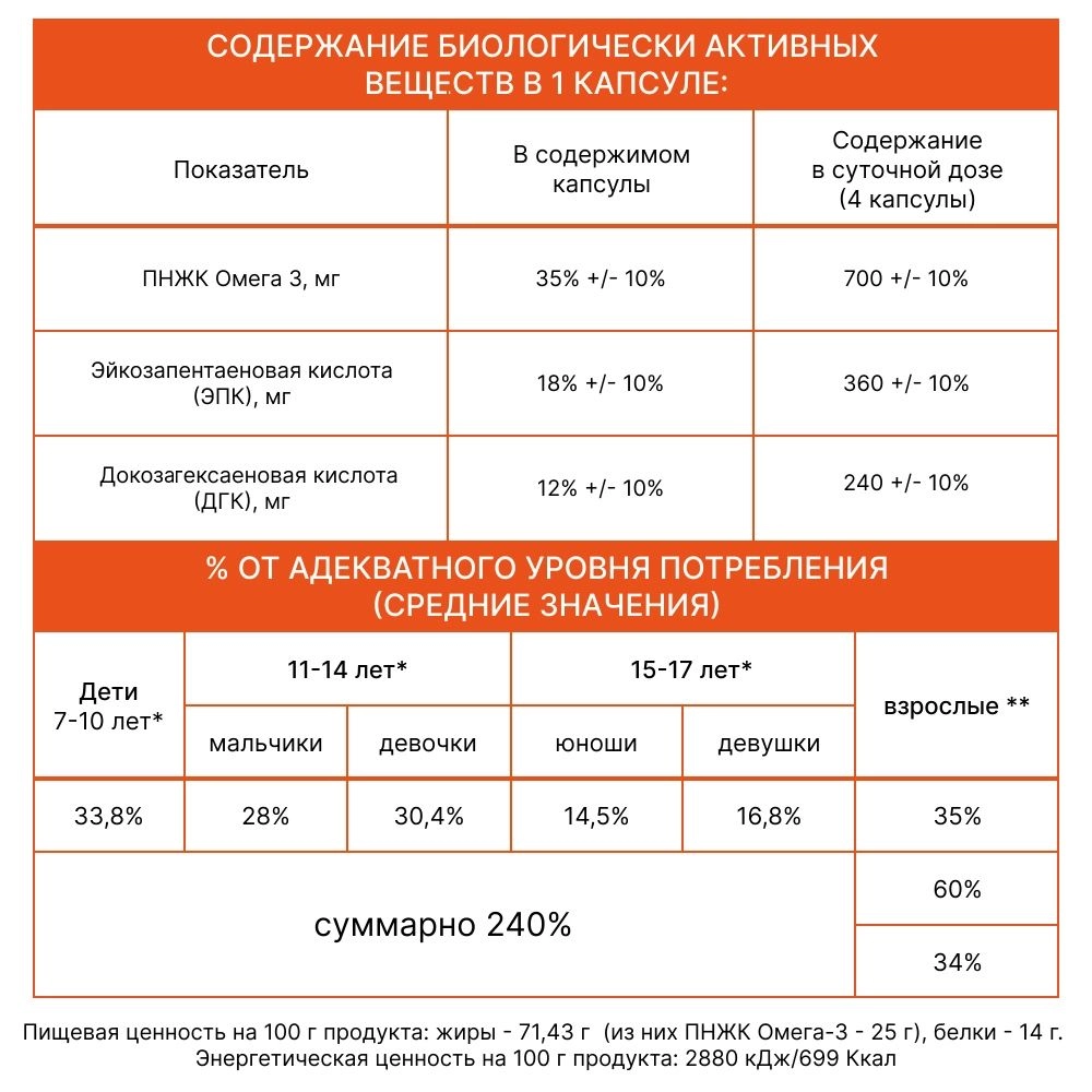 Биоактивный состав: жир рыб океанических пород.