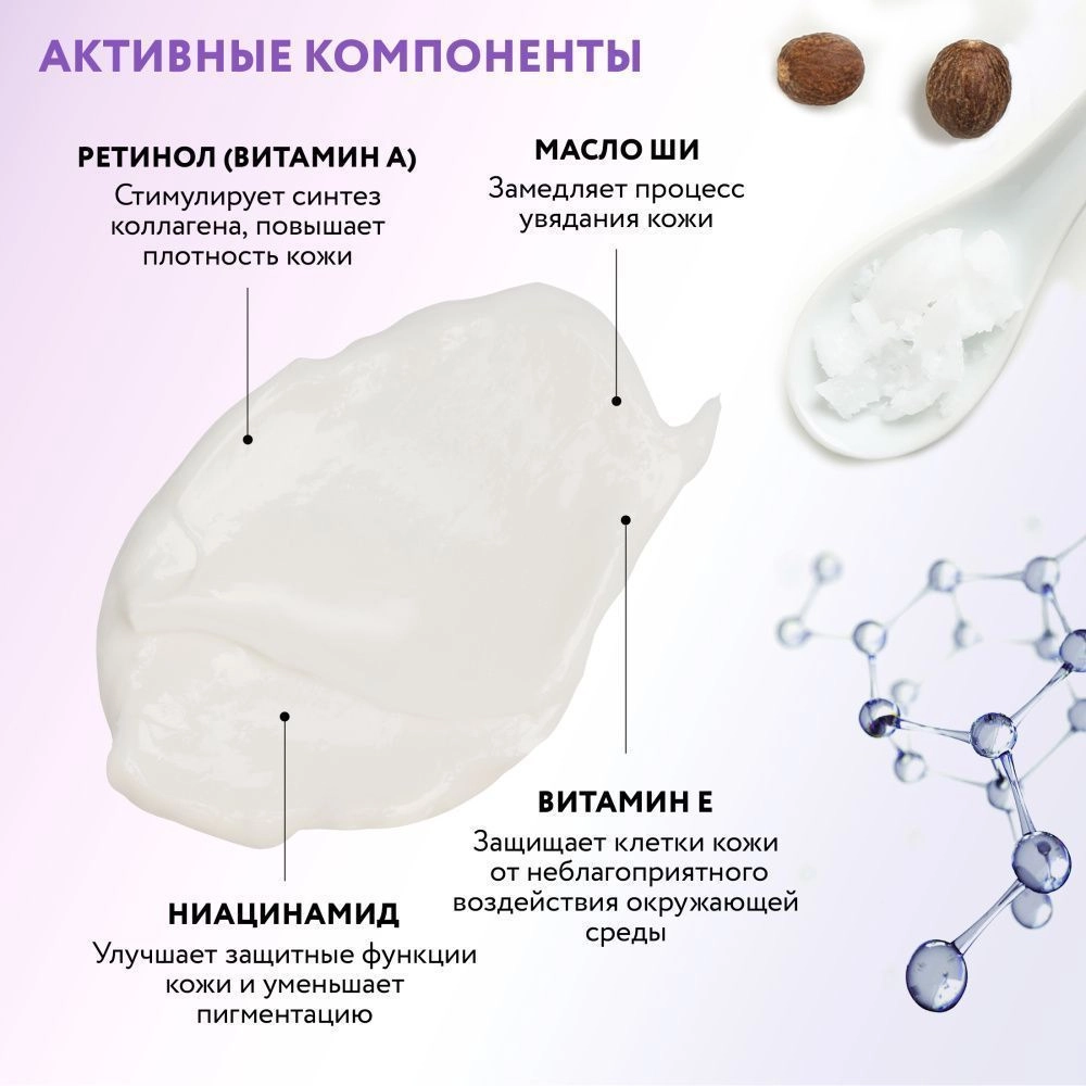 Назначение: антивозрастной уход, коррекция морщин, лифтинг и упругость, питание и защита.
