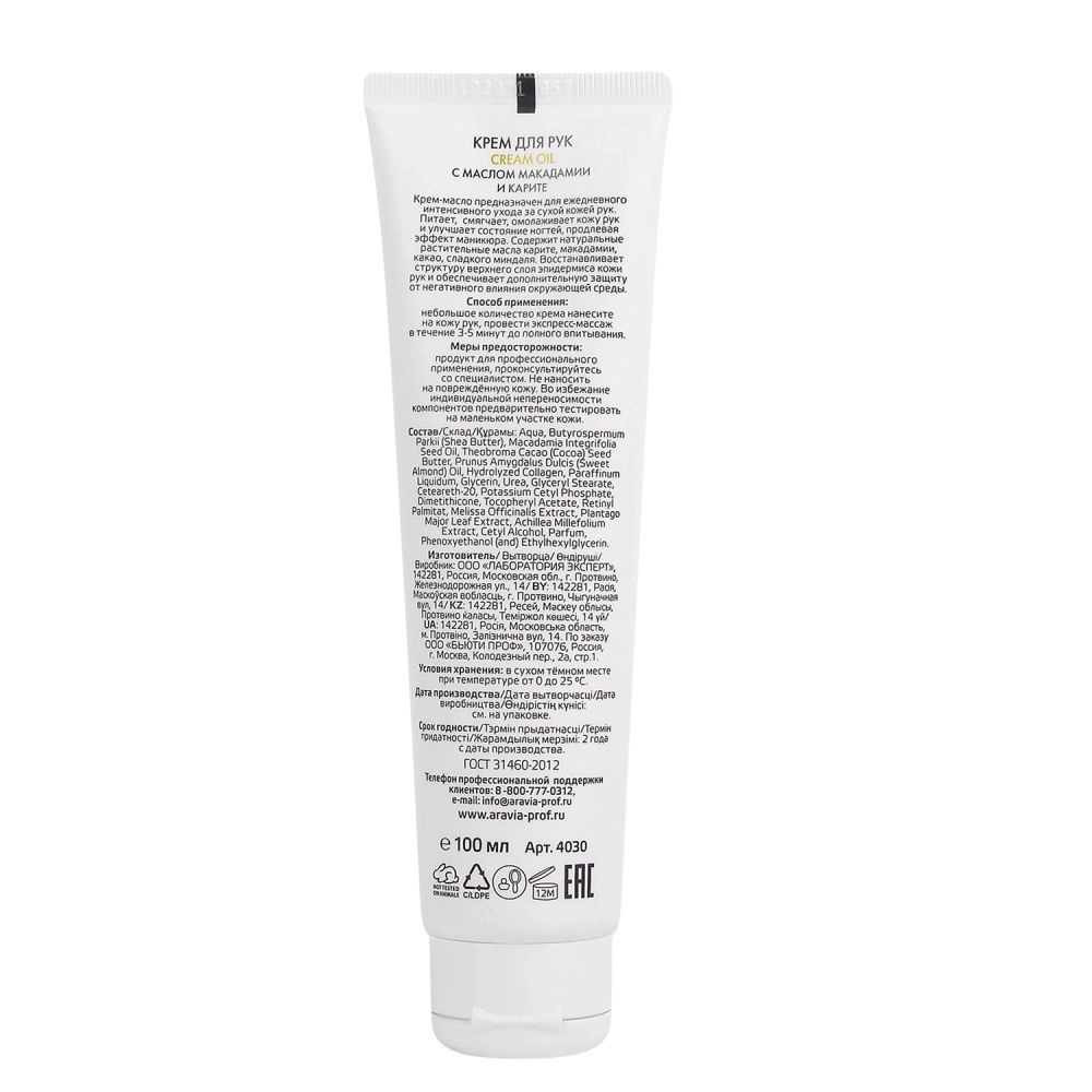 Крем-масло предназначен для ежедневного интенсивного ухода за сухой кожей рук. Питает, смягчает, омолаживает кожу р