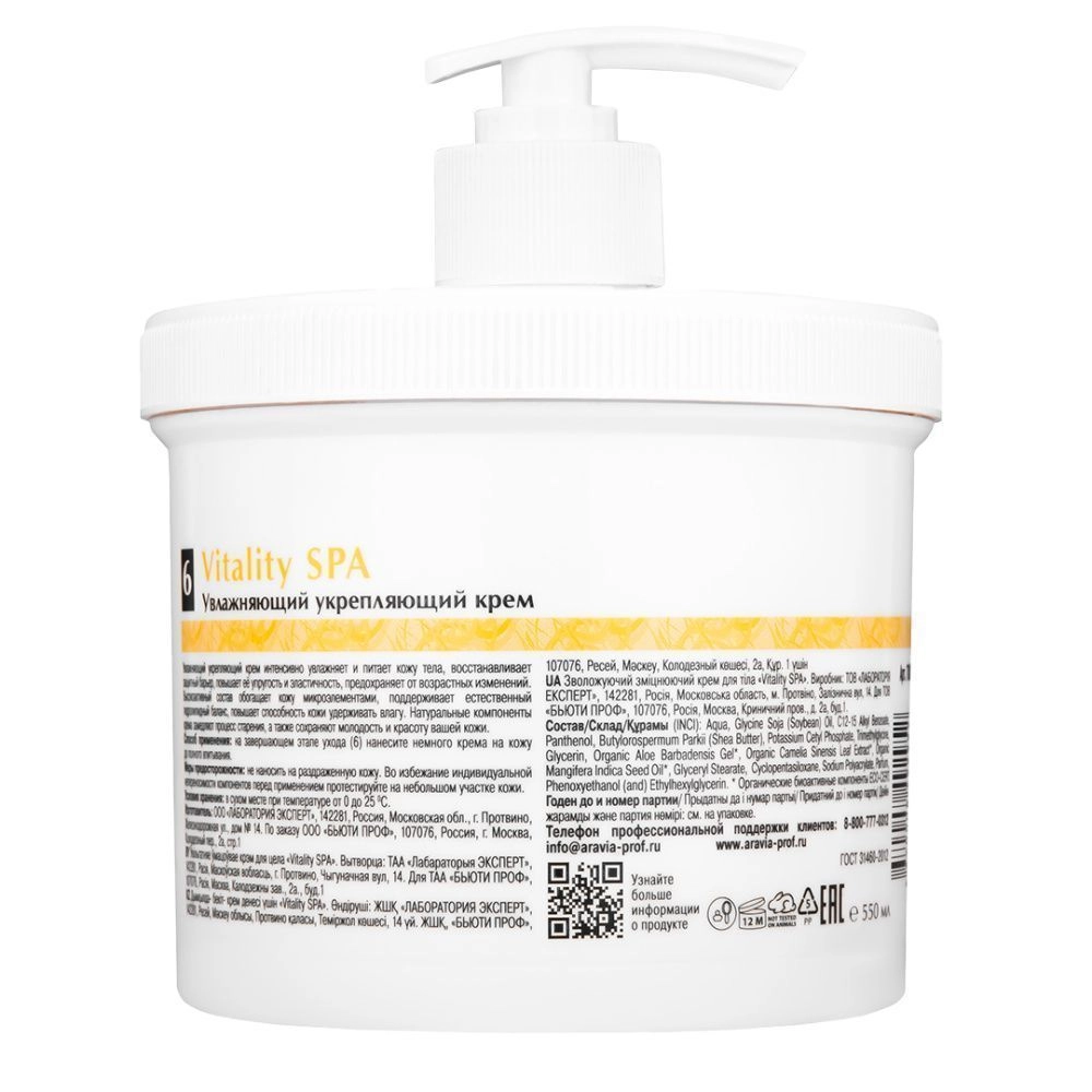 Данный продукт "Крем увлажняющий укрепляющий Vitality SPA, 550 мл" - имеет укрепляющий эффект и больше подходит для тела.