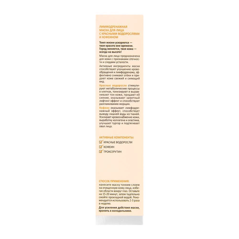 Маска для лица предназначена для кожи с признаками отечности и следов усталости. Активные ингредиенты маски способствуют улучшению кровообращения и лимфодренажа, эффективно снимают отёки и придают коже свежий и сияющий вид.