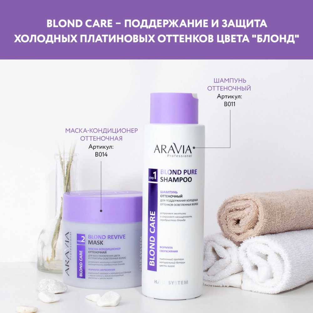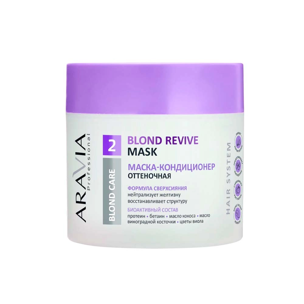 При использовании оттеночной маски-кондиционера Blond Revive Mask рекомендуем применять шампунь, не имеющий оттеночных свойств.