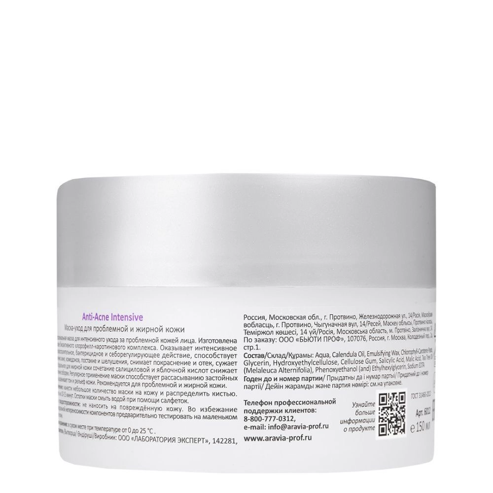 Профессиональная маска для интенсивного ухода за проблемной кожей лица. Изготовлена на основе биоактивного хлорофилл-каротинового комплекса. Оказывает интенсивное успокаивающее, бактерицидное и себорегулирующее действие, способствует устранению акне, комедонов, постакне и шелушения, снимает покраснение и отек, сужает поры. Идеальное для жирной кожи сочетание салициловой и яблочной кислот снижает проявление себореи. Регулярное применение маски способствует рассасыванию застойных пятен, выравнивает тон и рельеф кожи.