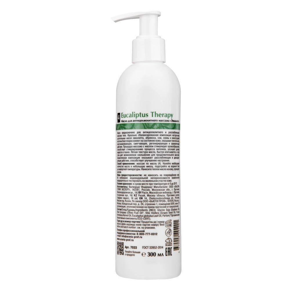 Масло для антицеллюлитного массажа Eucaliptus Therapy, 300 мл
