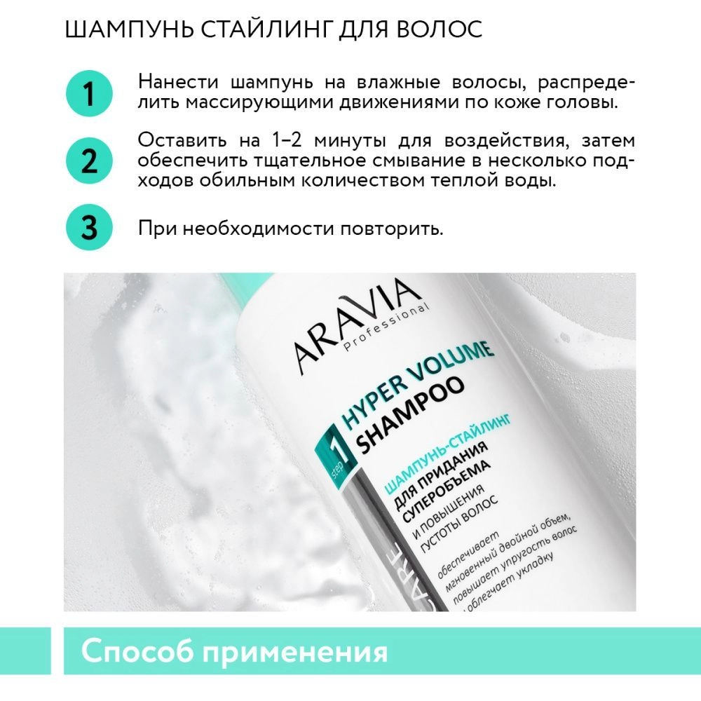 Шаг 1: Шампунь-стайлинг для придания суперобъема и повышения густоты волос, 420 мл