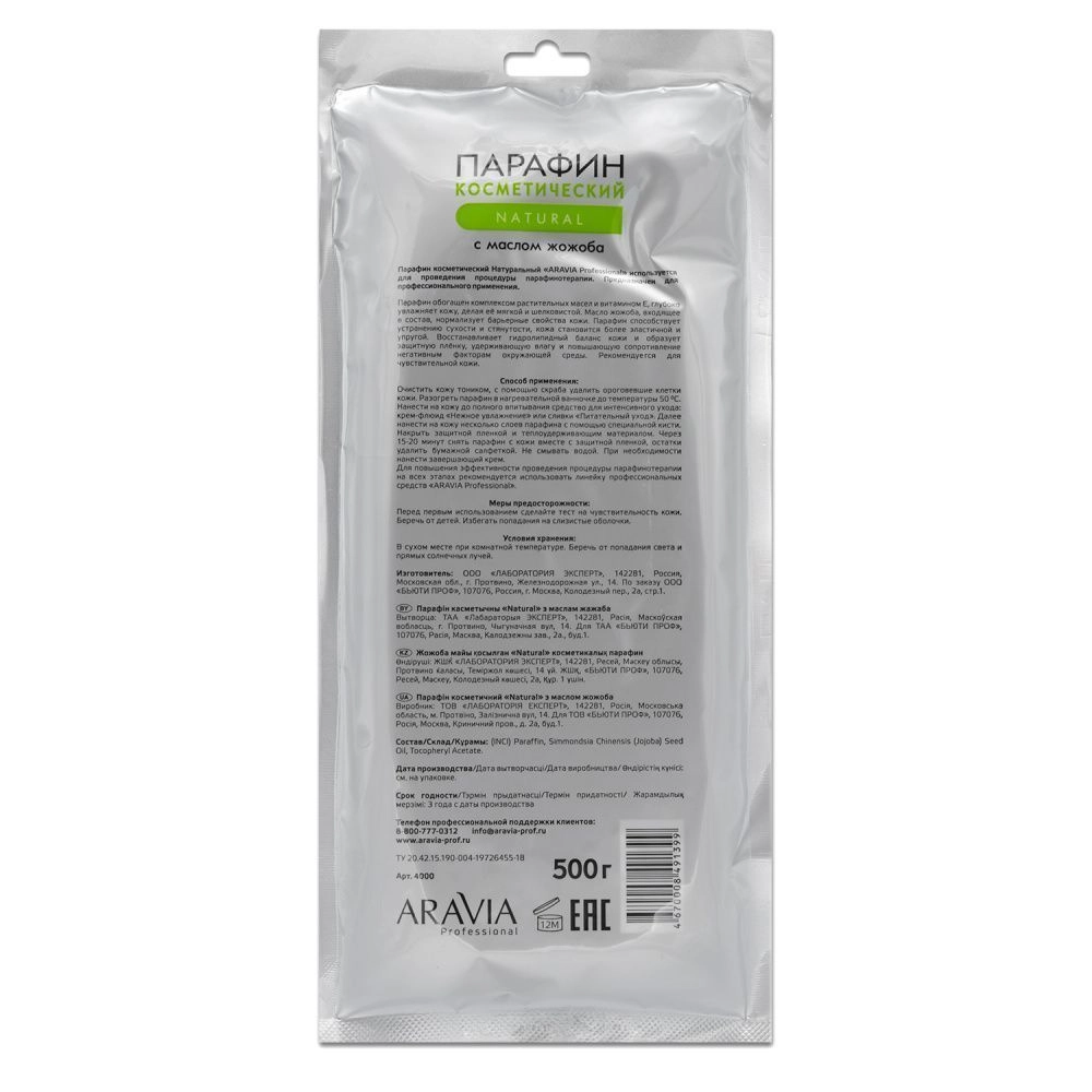 Парафин косметический с маслом жожоба Natural, 500 г