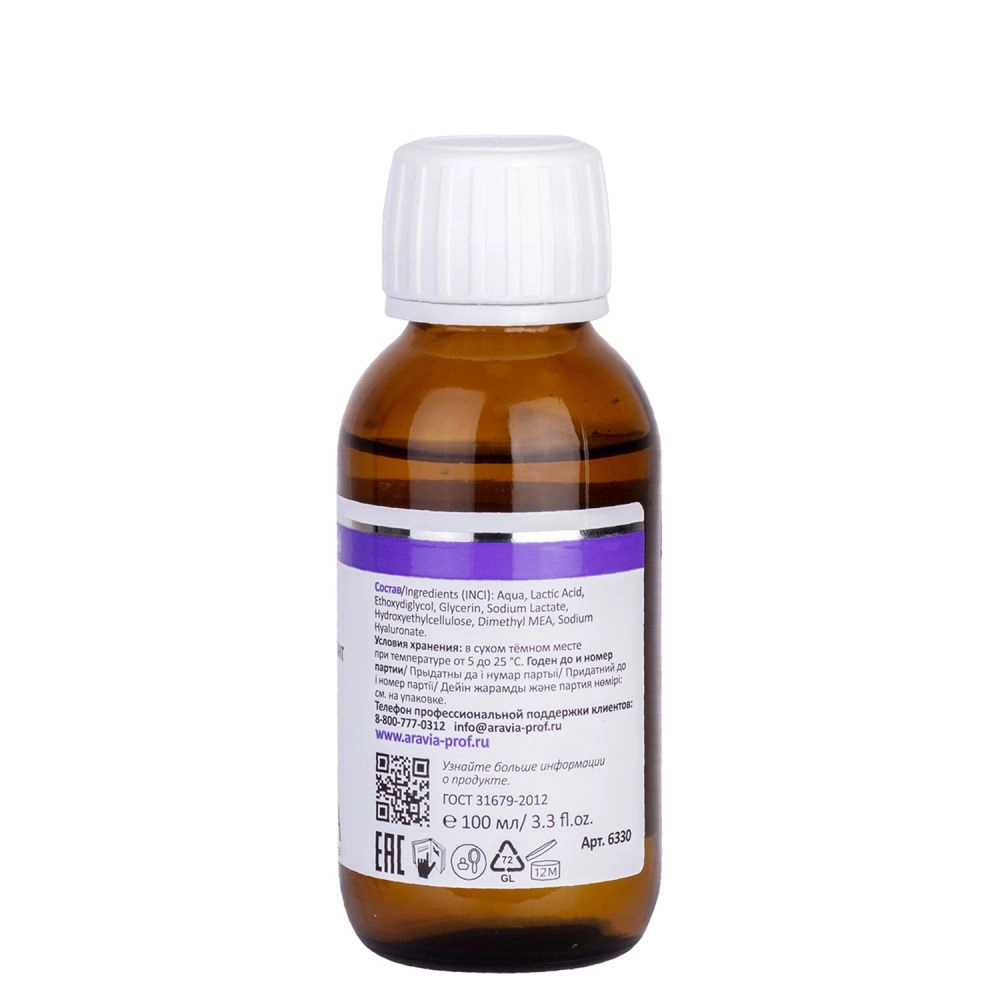 Состав (INCI): Aqua, Lactic Acid, Ethoxydiglycol, Glycerin, Sodium Lactate, Hydroxyethyl cellulose, Dimethyl MEA, Sodium Hyaluronate.