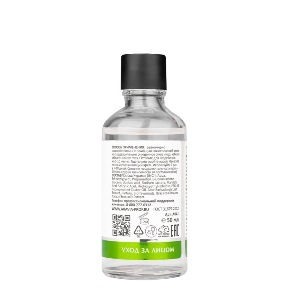 Биоактивный состав: азелаиновая кислота, салициловая кислота, глюконовая pha кислота, миндальная кислота, биофлавоноиды, экстракт алоэ, экстракт брокколи, лактат натрия.