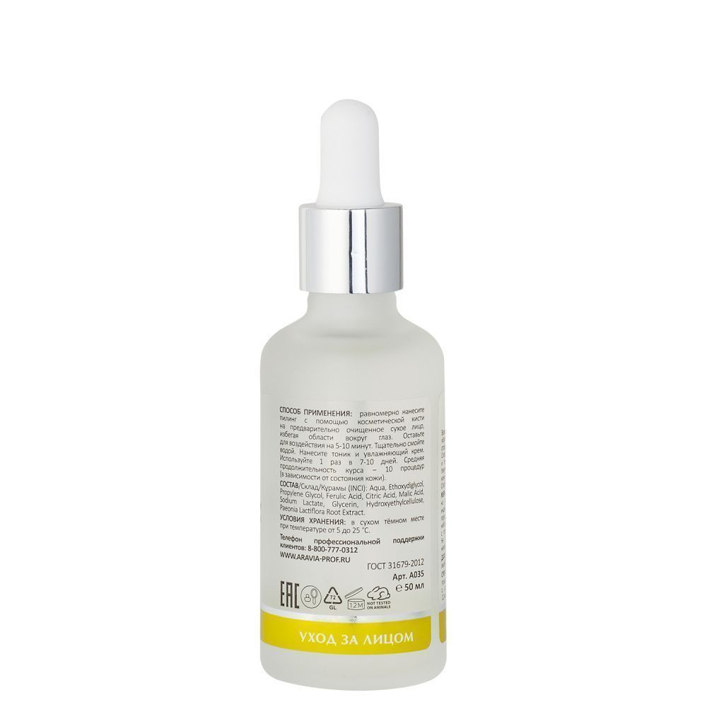 Всесезонный пилинг на основе феруловой, яблочной и лимонной кислот мягко отшелушивает кожу, убирает гиперпигме