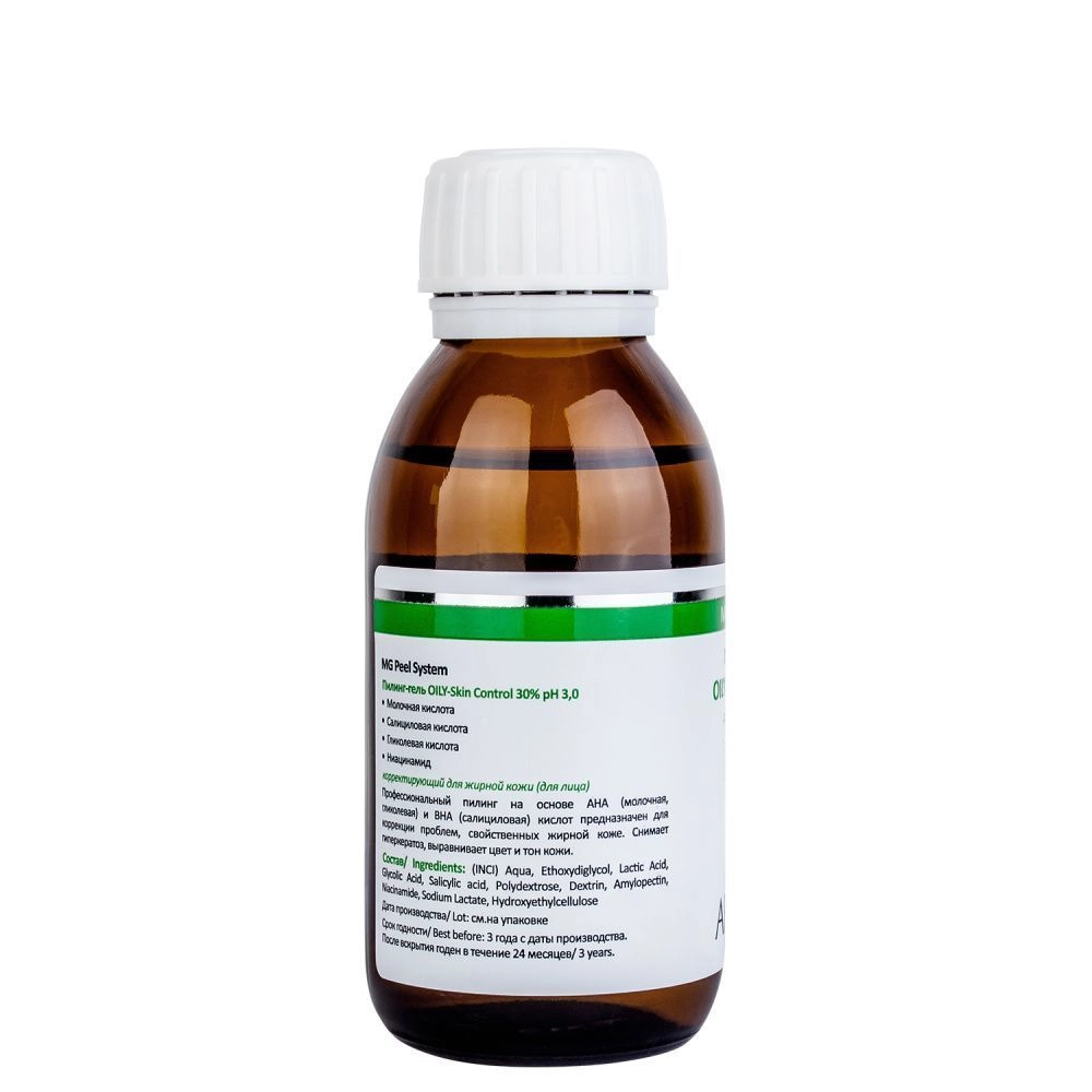 Профессиональный пилинг на основе АНА (молочная, гликолевая) и ВНА (салициловая) кислот предназначен для коррекции проблем, свойственных жирной коже. Снимает гиперкератоз, выравнивает цвет и тон кожи. Купирует процесс воспаления и проявления акне. Способствует рассасыванию пятен постакне. Сужает поры, уменьшает сальность кожи. Олиго-комплекс полисахаридов и анти-акне компонентов в составе пилинга стимулирует клеточное обновление, улучшает защитные свойства кожи. Стимулирует синтез церамидов. Позволяет безопасно применять пилинг даже для чувствительной кожи.