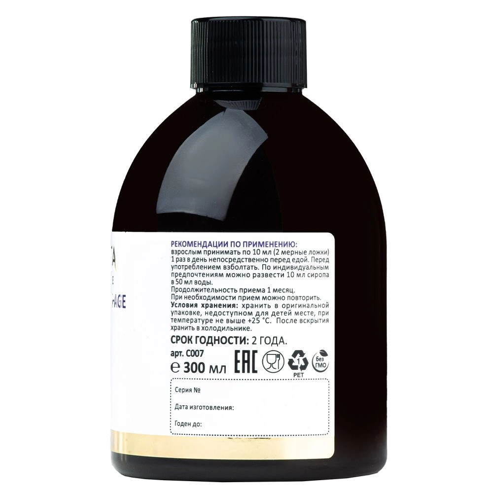Рекомендации по применению: взрослым принимать по 10 мл (2 мерные ложки) 1 раз в день непосредственно перед едой. Перед употреблением взболтать. По индивидуальным предпочтениям можно развести 10 мл сиропа в 50 мл воды.