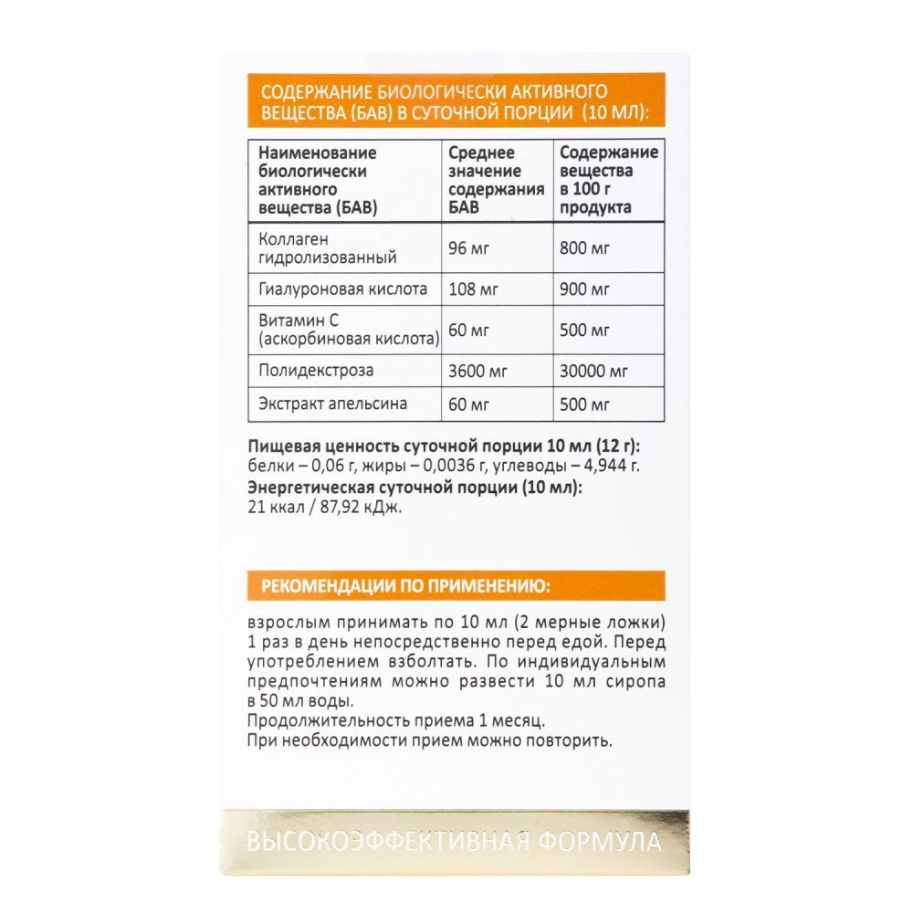 Пропила этот сироп месяц, заметила общее улучшение самочувствия, вставать по утрам стало гораздо легче, наличие в сиропе гиалуроновой кислоты на состоянии кожи никак не отразилось, а вот коллаген заметно подтянул овал лица и очертания фигуры стали более четкими.
