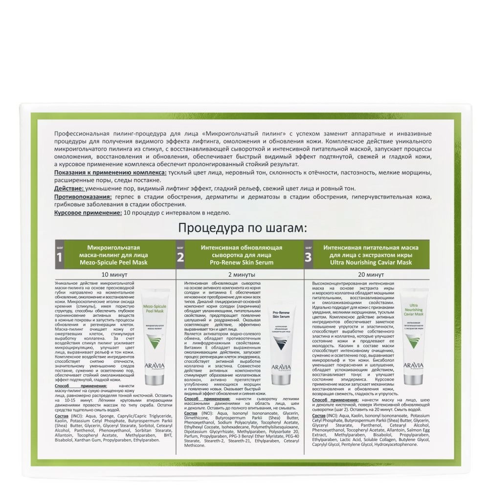Комплексное действие уникального микроигольчатого пилинга из спикул, с восстанавливающей сывороткой и интенсивной питательной маской, запускает процессы омоложения, восстановления и обновления, обеспечивает быстрый видимый эффект подтянутой, свежей и гладкой кожи, а курсовое применение комплекса обеспечит пролонгированный стойкий результат.