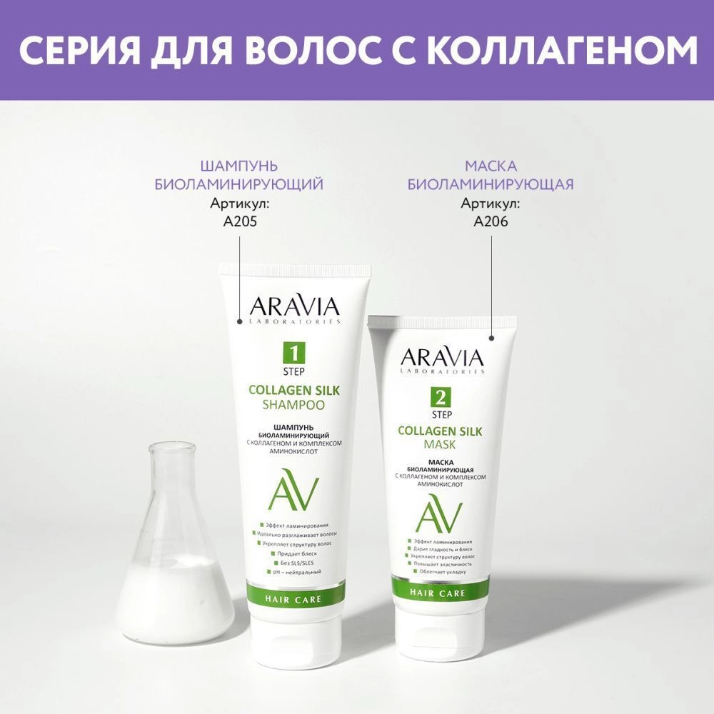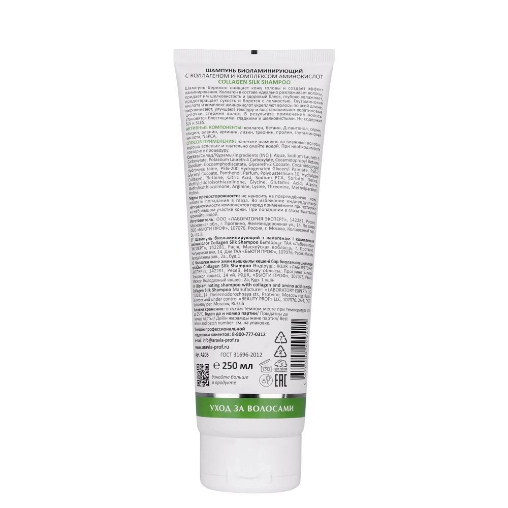 Шампунь бережно очищает кожу головы и создает эффект ламинирования. Коллаген в составе идеально разглаживает в
